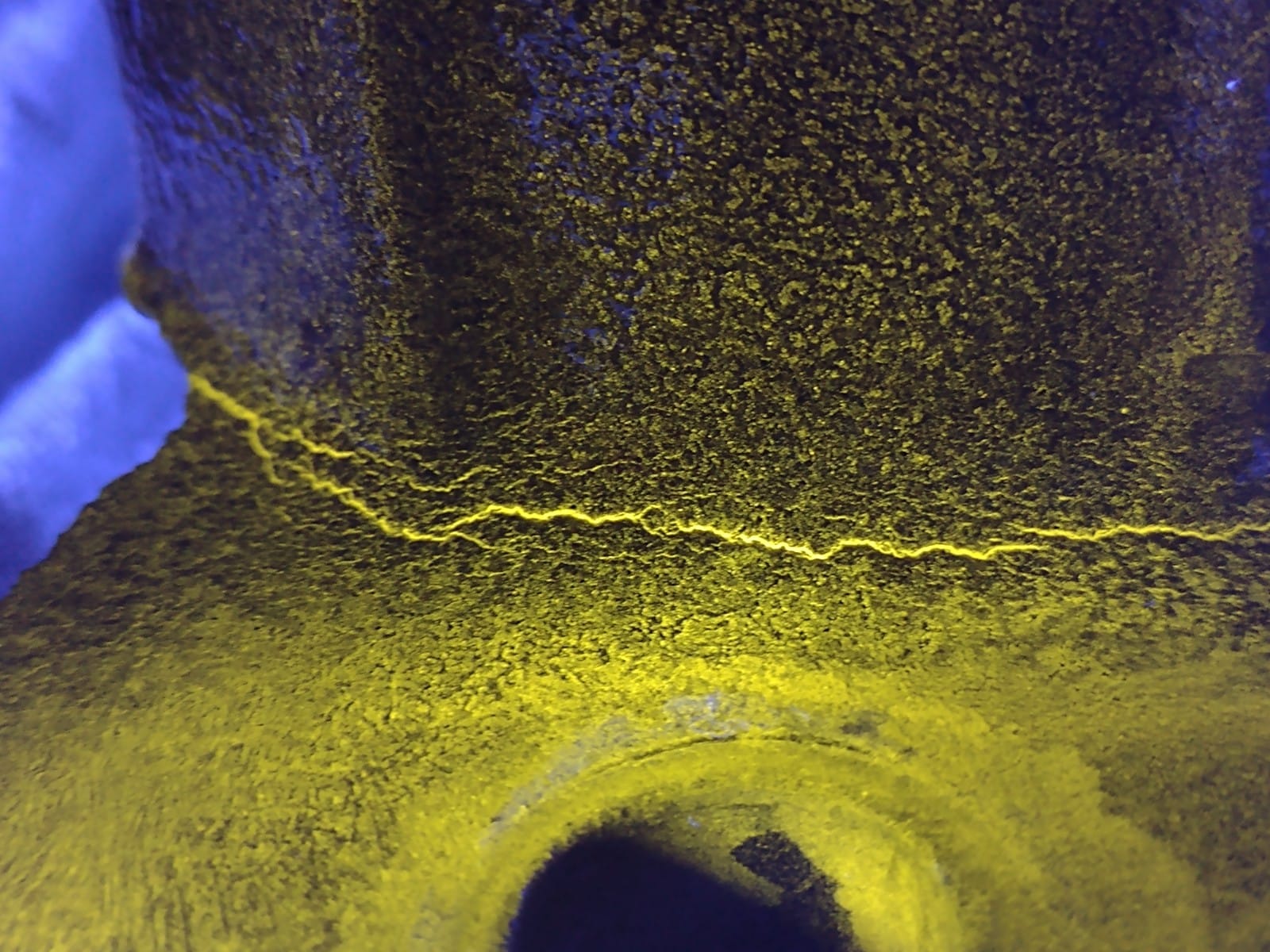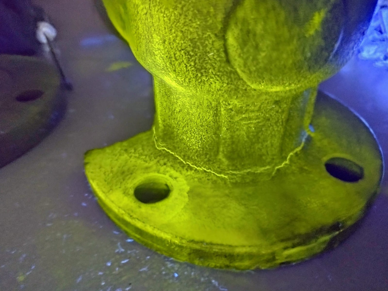 Serviço realizado pela empresa, com aplicação da técnica de partículas magnéticas fluorescentes em válvulas industriais, com o objetivo de identificar trincas e descontinuidades superficiais ou subsuperficiais em materiais ferromagnéticos.